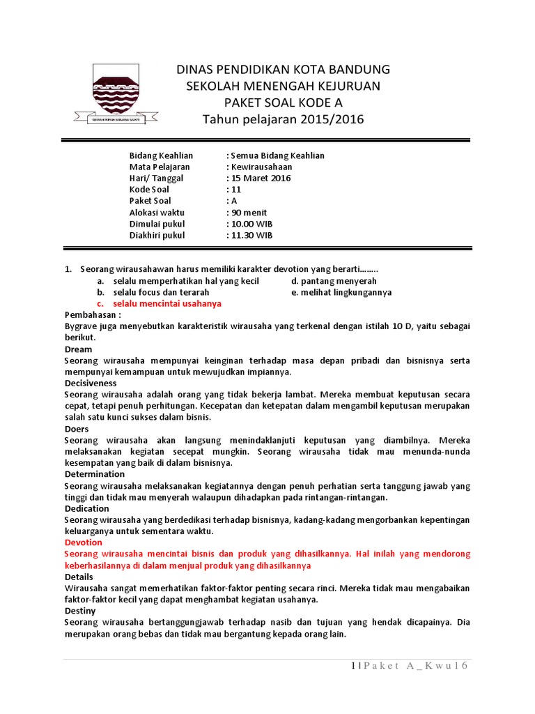 Jangan lupa tetap bersama kami di. Ini beberapa contoh soal kewirausahaan kelas 12 sma/ma/smk dan lengkap dengan kunci jawabannya: ( baca juga bahan yang sama dalam bentuk pilihan ganda pada tulisan: Contoh soal produktif dan jawabannya. Soal yang akan saya sajikan kali ini berupa 30 pilihan ganda dan 10 essay.